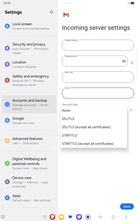 Press the field below "Server" and key in the name of your email provider's incoming server.