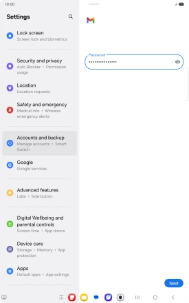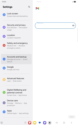 Press the field below "Password" and key in the password for your email account.