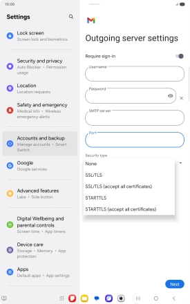 Press the field below "Password" and key in the password for your email provider's outgoing server.
