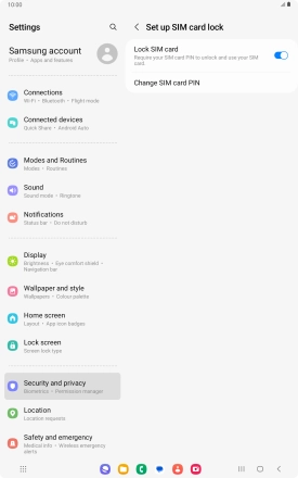 Press the indicator next to "Lock SIM card" to turn the function on or off.