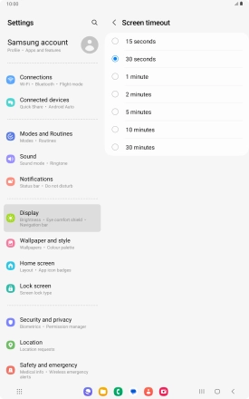 Press Screen timeout.