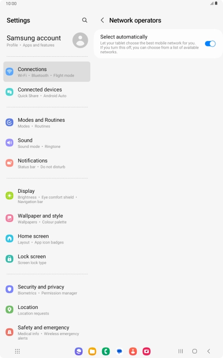 Press the indicator next to "Select automatically" to turn off the function and wait while your tablet searches for networks.