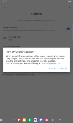 Press the indicator next to "Google Assistant" to turn the function on or off.
