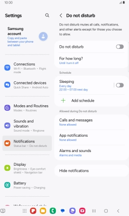 Press the indicator next to "Do not disturb" to turn the function on or off.
