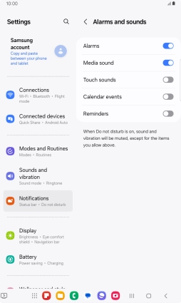 You can select which tablet functions that can use sound and vibration when Do Not Disturb is turned on.