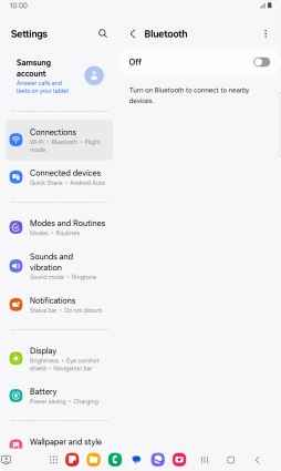 Press the required Bluetooth device and follow the instructions on the screen to pair the device with your tablet.
