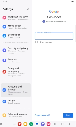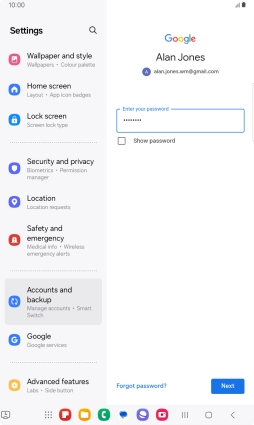 Press the field below "Enter your password" and key in the password for your Google account.