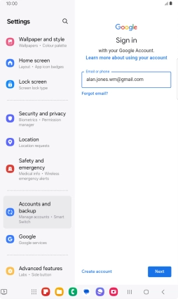 If you don't have a Google account, press Create account and follow the instructions on the screen to create an account.