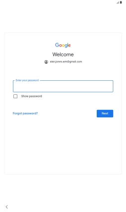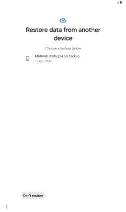 When this screen is displayed, your tablet is ready to restore content from a Google One backup.