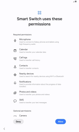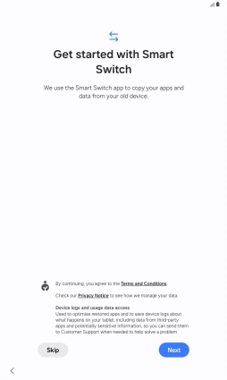 You can transfer the contents of another device to your tablet when it's activated for the first time and after a factory reset. When this screen is displayed, your tablet is ready to transfer contents from another device.