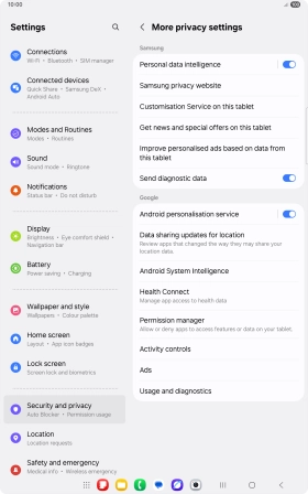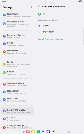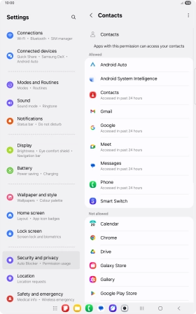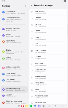 Turn app permissions on your Samsung Galaxy Tab S10 FE 5G Android 15 on or off