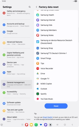Press Delete all. Wait a moment while the factory default settings are restored. Follow the instructions on the screen to set up your tablet and prepare it for use.