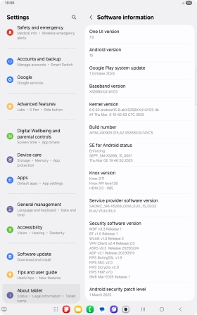 Your tablet's software version is displayed below Android version.