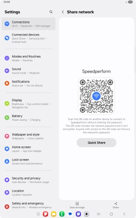 Share Wi-Fi network login information on your Samsung Galaxy Tab S10 FE 5G Android 15