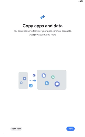 When this screen is displayed, your tablet is ready to restore content from a Google One backup.