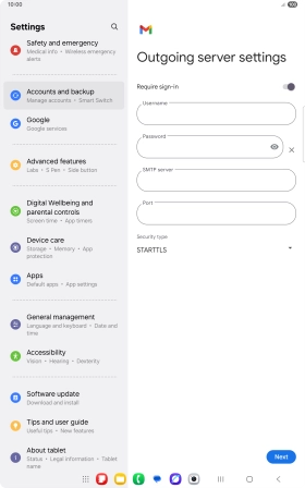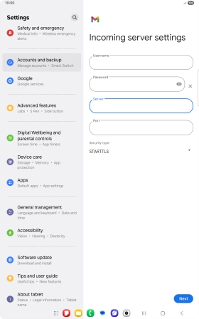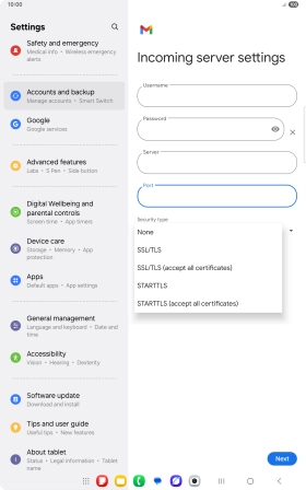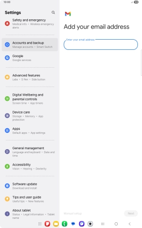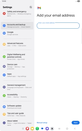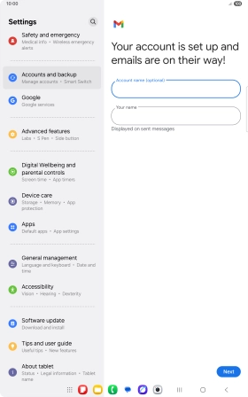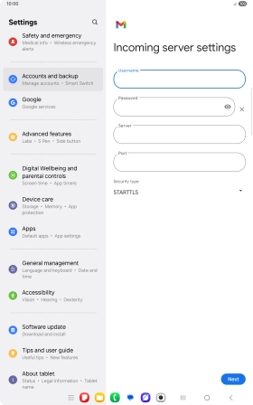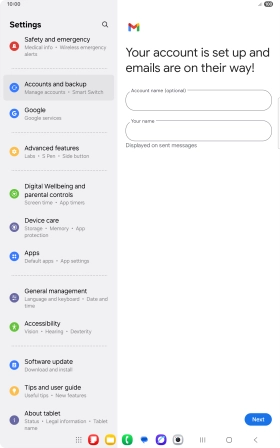 If this screen is displayed, you email account has been recognised and set up automatically. Follow the instructions on the screen to key in more information and finish setting up your tablet.