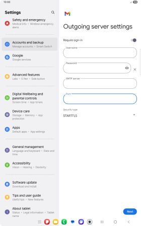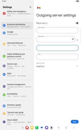 11. Enter outgoing server