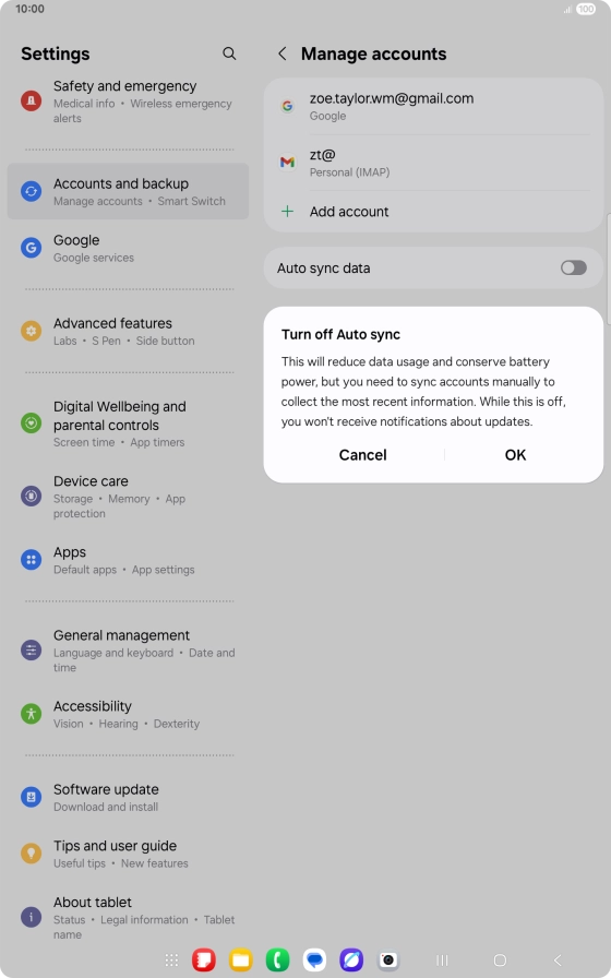 Press the indicator next to "Auto sync data" to turn the function on or off.