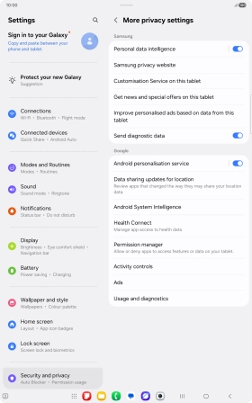 Turn app permissions on your Samsung Galaxy Tab S10 Lite 5G Android 16 on or off