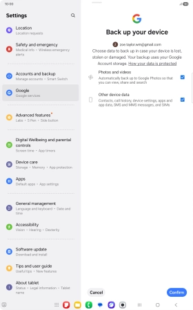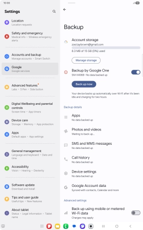 Back up memory on your Samsung Galaxy Tab S10 Lite 5G Android 16