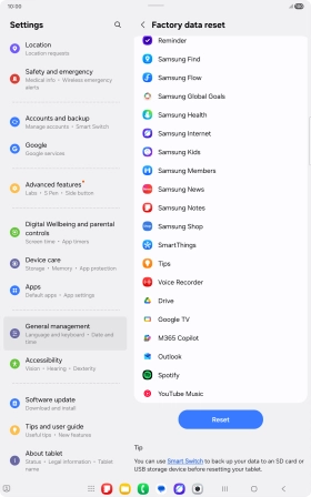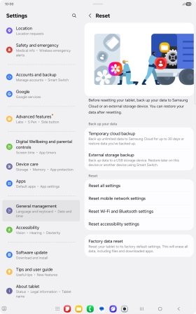 Press Delete all. Wait a moment while the factory default settings are restored. Follow the instructions on the screen to set up your tablet and prepare it for use.