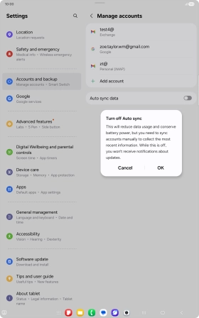 Turn automatic synchronisation of content on your Samsung Galaxy Tab S10 Lite 5G Android 16 on or off