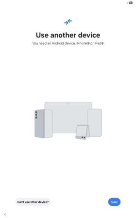 Press the required setting and follow the instructions on the screen to transfer the content from another device.