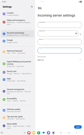 Set up your Samsung Galaxy Tab S10 Lite 5G Android 16 for IMAP email