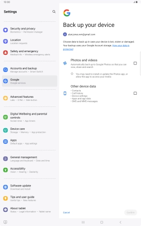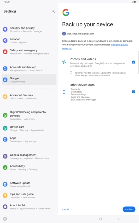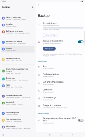 The memory will be backed up automatically when your tablet is charging, the screen lock is turned on and a Wi-Fi connection is established.