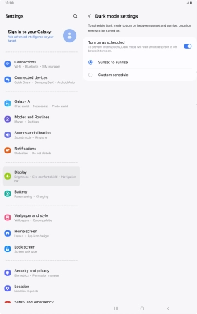 If you select Custom schedule, follow the instructions on the screen to select the required period of time for dark mode.