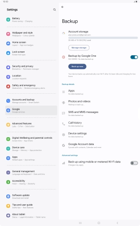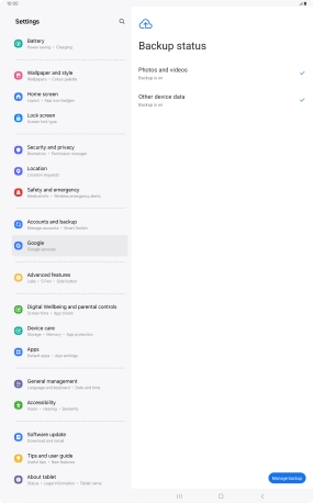 Back up memory on your Samsung Galaxy Tab S10 Ultra 5G Android 14