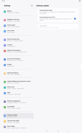 Press Download and install. If a new software version is available, it's displayed. Follow the instructions on the screen to update the tablet software.