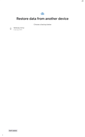 When this screen is displayed, your tablet is ready to restore content from a Google One backup.