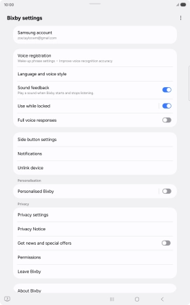Press the required setting and follow the instructions on the screen to log on to your Samsung account.