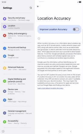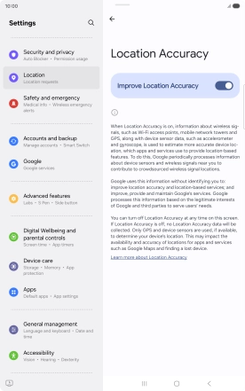 If you press the indicator next to "Improve Location Accuracy" to turn off the function, your tablet can find your exact position using the GPS satellites but it may take longer as there is no access to supplementary information from the mobile network or nearby Wi-Fi networks.