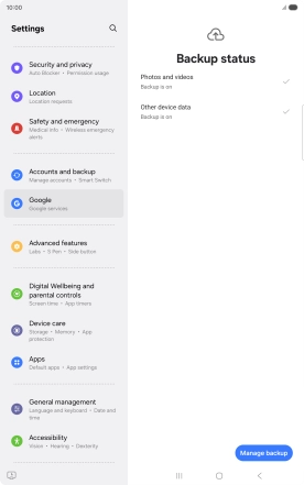 Back up memory on your Samsung Galaxy Tab S11 5G Android 16
