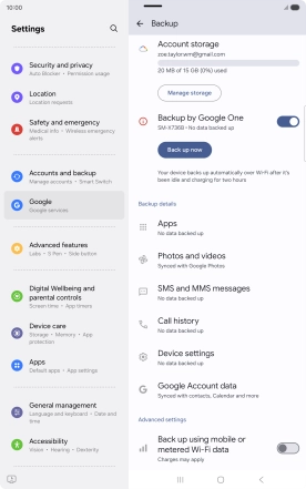 4. Back up memory to Google One