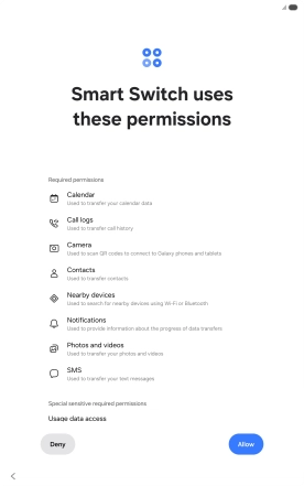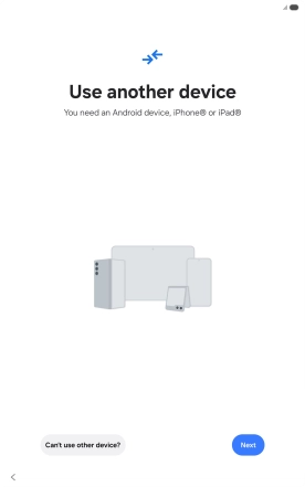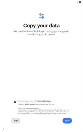 You can transfer the contents of another device to your tablet when it's activated for the first time and after a factory reset. When this screen is displayed, your tablet is ready to transfer contents from another device.
