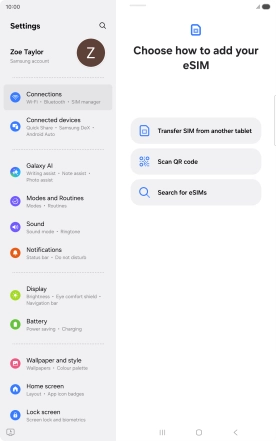 Place the QR code you've received inside the tablet camera frame to scan the code. Your eSIM is transferred to your new tablet over the internet.
