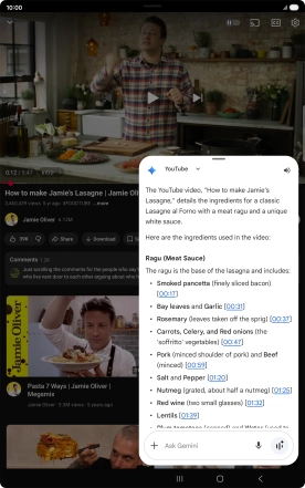 Using Gemini, you can ask questions about the content of a YouTube video.