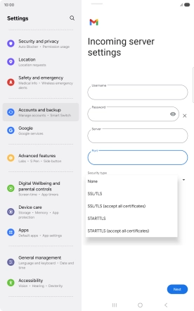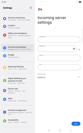 Press the field below "Server" and key in the name of your email provider's incoming server.