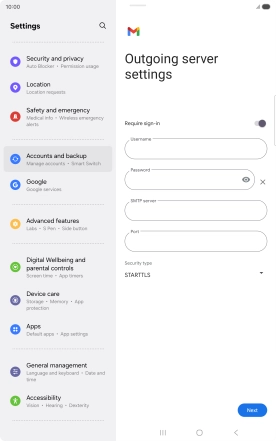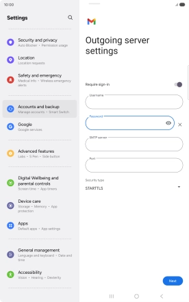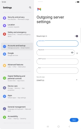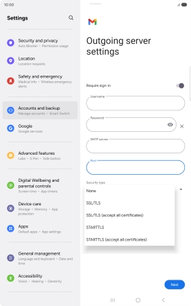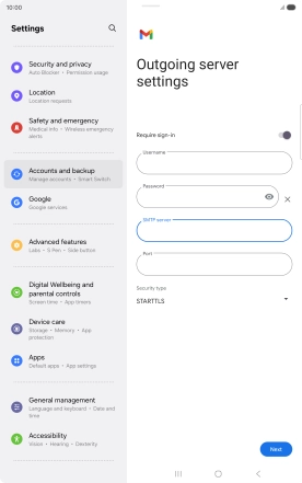 Press the field below "Username" and key in the username for your email the email provider's outgoing server.