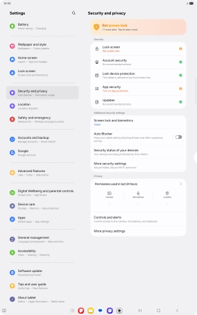 Press Security and privacy.