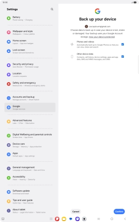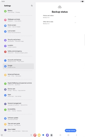 The memory will be backed up automatically when your tablet is charging, the screen lock is turned on and a Wi-Fi connection is established.