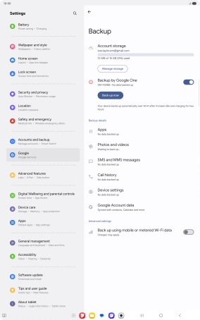 Press the indicator next to "Back up using mobile or metered Wi-Fi data" to turn the function on or off.
