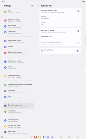 Set date and time on your Samsung Galaxy Tab S11 Ultra 5G Android 16