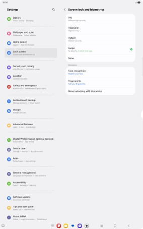 Turn use of lock code on your Samsung Galaxy Tab S11 Ultra 5G Android 16 on or off