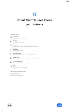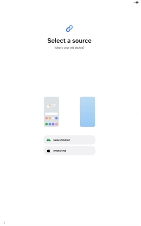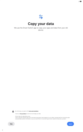 You can transfer the contents of another device to your tablet when it's activated for the first time and after a factory reset. When this screen is displayed, your tablet is ready to transfer contents from another device.