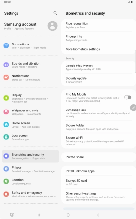 Turn use of PIN on your Samsung Galaxy Tab S8 5G Android 12.0 on or off