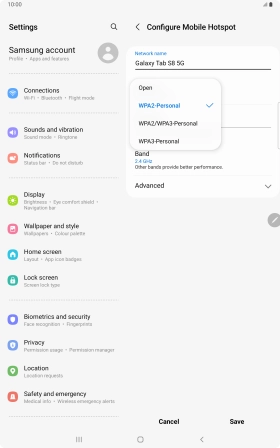 Press WPA3-Personal to password protect your Wi-Fi hotspot.